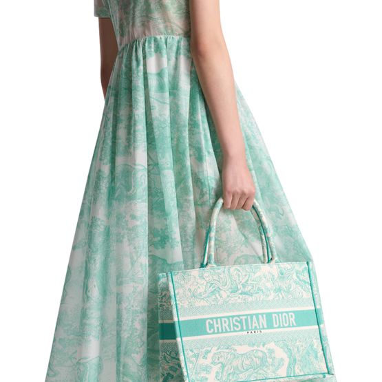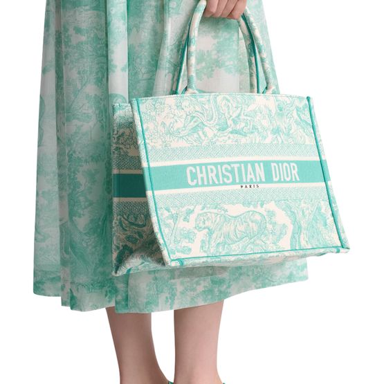 The Dior Book Tote, an original style introduced by Creative Director Maria Grazia Chiuri, has become a staple of the Dior aesthetic. Designed to carry all your daily essentials, the medium pink silhouette portrays a fully embroidered Toile de Jouy motif with the 'Christian Dior' signature on the front. The carryall is an excellent example of Dior savoir-faire and pairs well with small accessories like...