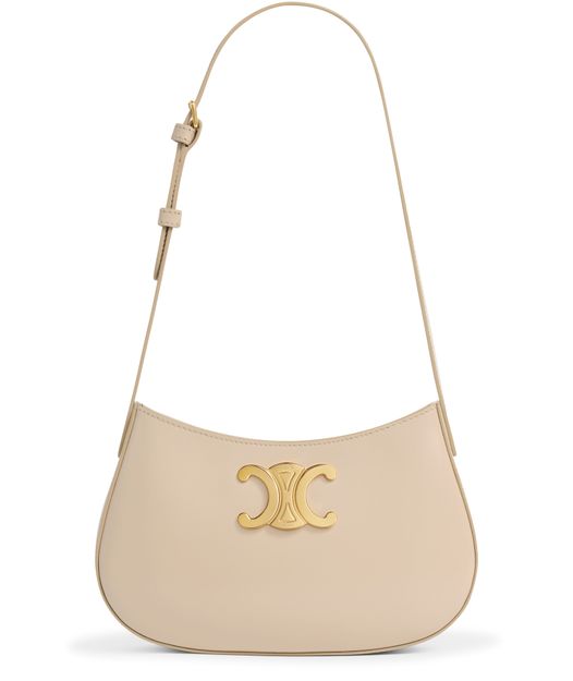 Celine's Medium Tilly bag in shiny calfskin is a luxurious companion, designed for effortless elegance. With a zipped closure and one main compartment, it offers practicality without sacrificing style. The adjustable strap allows for versatile shoulder carry, while the lambskin lining and gold finishing elevate its sophisticated allure, perfect for any occasion.