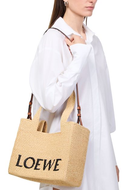 The Loewe Medium tote bag is a versatile and stylish accessory. This medium-sized bag features a spacious interior, making it perfect for everyday use. It can be worn in the hand or on the shoulder, thanks to its two handles. The bag is adorned with an embroidered logo, adding a touch of elegance to any outfit.