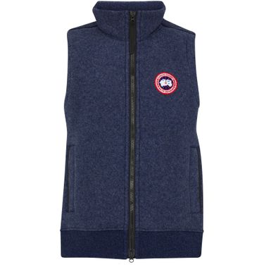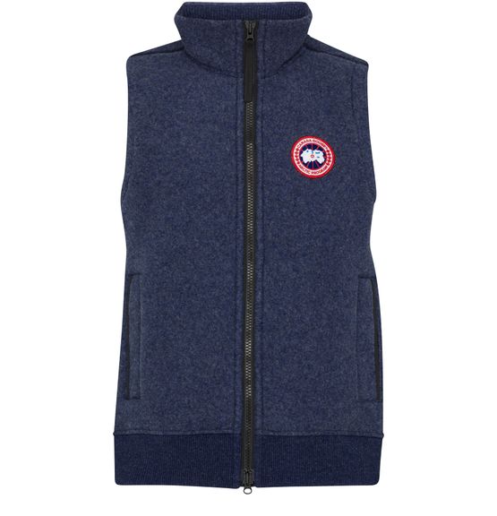 Stay warm in Mersey Fleece Vest. This sleeveless vest is made from warm fabric, partly recycled for sustainability. It features a straight cut, mockneck, and zipper closure for easy layering. The appliquéd logo and side pockets add functionality and style to this versatile winter essential.