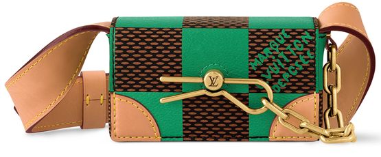 The Micro Steamer is a miniature version of the Steamer Wearable Wallet. It’s made from Damier Pop canvas, Creative Director Pharrell Williams’ new take on Damier, revamped with a bold primary color. The polished gold-color pin-and-chain evoke Louis Vuitton’s original Steamer bags. The shoulder strap adjusts for comfortable carry.