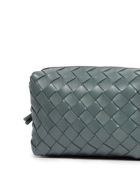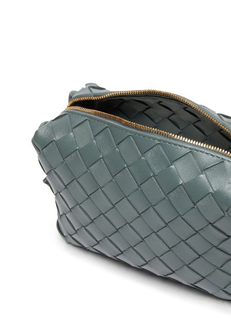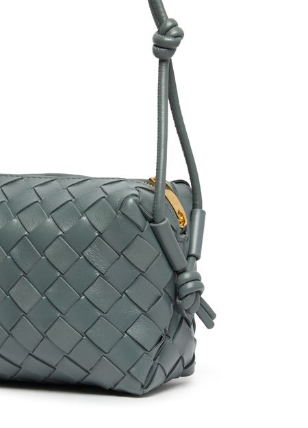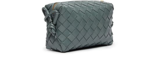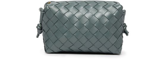 Bottega Veneta's Loop mini camera bag features an adjustable strap and a zipper closure. It showcases the brand's signature Intrecciato weaving technique and has a single compartment with calf leather lining. This versatile bag can be worn on the shoulder for a stylish and practical accessory.