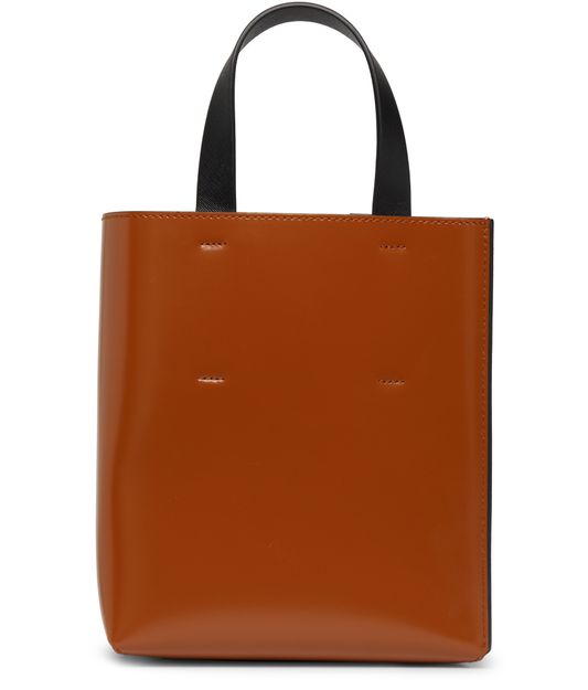Marni's Museo mini Bag in leather offers versatility with its handles and detachable strap, allowing it to be hand carried, worn on the shoulder, or styled crossbody. The single compartment features an interior pocket for essentials, while the front and embroidered logos add a touch of elegance to this chic accessory.