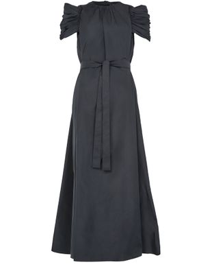 Discover the Max Mara Nicia maxi dress, a perfect blend of elegance and style. This A-line, loose-fit dress features a charming round neck and short, ruffled sleeves. The bow fastening and belt loops add a contemporary touch, making it an ideal choice for any sophisticated occasion.