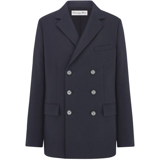 Reimagine Dior's oversized blazer virgin wool and silk. This exquisite piece features a double-breasted design with six Christian Dior Paris horn buttons and a tonal lining, showcasing unparalleled craftsmanship.