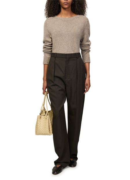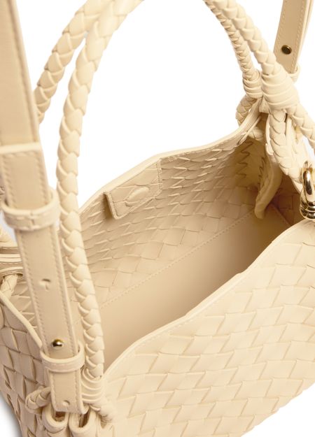 Reveal Bottega Veneta's Parachute shoulder bag, a testament to refined artistry with its signature Intrecciato weaving technique. The double handles and thin, adjustable strap offer versatile carrying options, while the magnetic closure and gold finish add a polished touch to the spacious interior compartment.