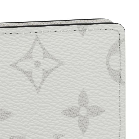 The handsome and functional Pocket Organizer wallet looks fresh in Monogram canvas paired with matching colored Taiga cowhide leather. It has numerous card slots and pockets and yet slips easily into almost any pocket.
