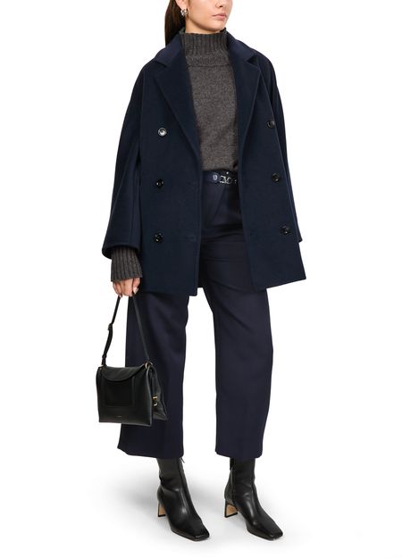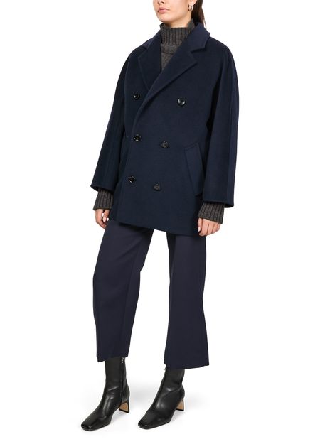 Discover Max Mara's Rebus cropped coat, a knee-length masterpiece featuring a sleek notched collar. This long-sleeved coat, adorned with welt pockets, offers a sophisticated double-breasted design, perfect for elevating your wardrobe with timeless elegance.