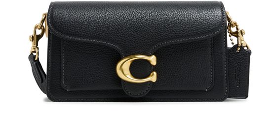 Coach's Refresh Tabby shoulder bag 20 boasts a chic flap closure and a striking front logo in gold letters. With its single handle and detachable wide strap, it can be effortlessly worn on the shoulder. Visible topstitching and a luxurious gold finish add to its sophisticated allure.