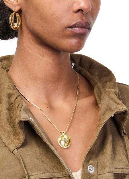 Reveal Isabel Marant's short necklace, a refined pendant necklace with a radiant gold finish. This piece effortlessly elevates any ensemble, offering a modern accent that captures attention with its sleek silhouette and subtle shine. Perfect for those who appreciate understated sophistication.