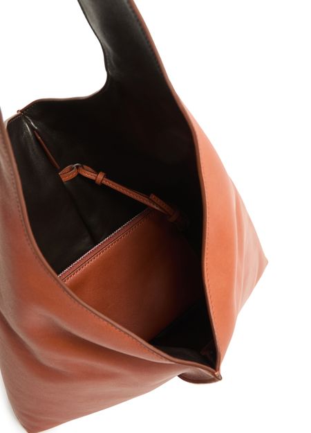 Reveal The Row's Small Bindle Stitch bag, crafted from smooth leather with a single handle for effortless sophistication. Visible topstitching and a detachable interior purse add refined detail and versatility, making this shoulder bag a modern essential for those who appreciate understated elegance.