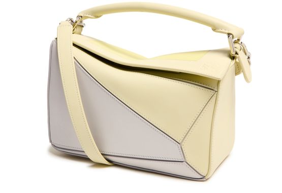 The Puzzle is defined by its distinctive geometric lines and its cuboid form. This small version is crafted in nappa calfskin with intarsio squares inspired by Josef Albers's "Homage to the Square" series. This bag is part of the LOEWE x Albers collection.