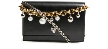 Reveal Alexander McQueen's Small Skull bag, crafted from smooth leather with a striking chain strap and detachable option for versatile styling. The front logo and visible stitching add a refined touch, while the snap-button fastening and interior pocket ensure both security and practicality.
