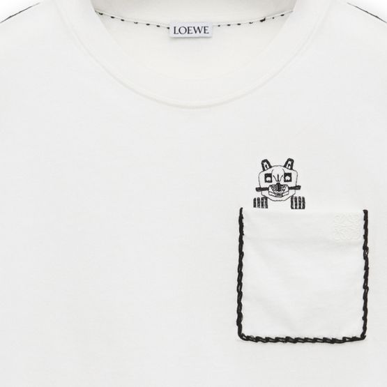 T-shirt in lightweight cotton featuring a Futurist cat embroidery on the chest and hand-embroidered piping. This T-shirt is inspired by Louis Wain's "Futurist Cats" porcelain vase series.