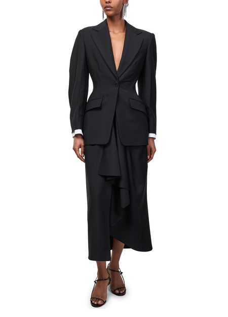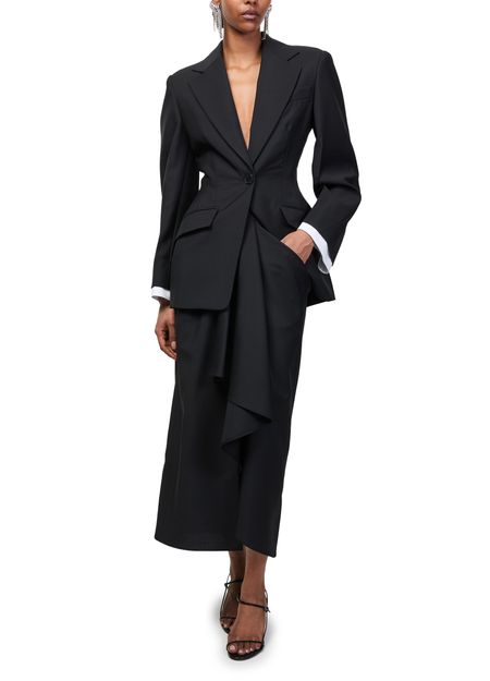 Reveal Givenchy's straight maxi skirt, a refined silhouette featuring a graceful draped detail that adds dimension and movement. The elongated length and sleek cut offer effortless sophistication, making this piece a versatile choice for both daytime elegance and evening allure.