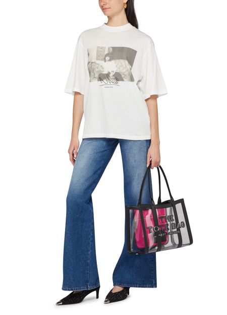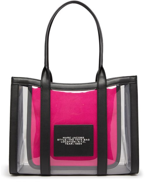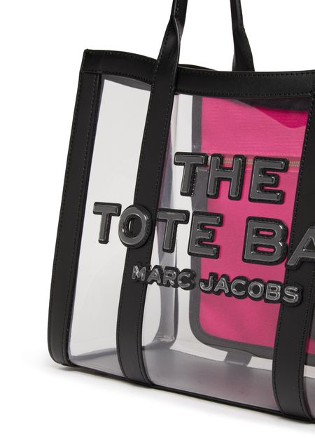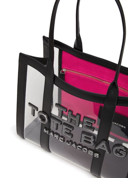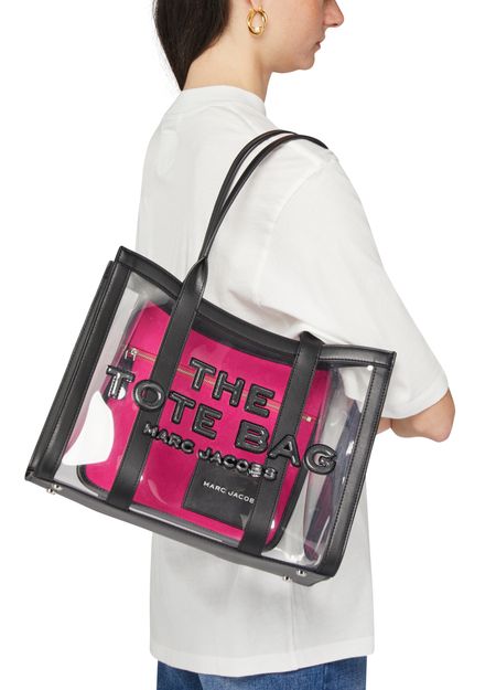 Marc Jacobs's Clear Medium Tote bag is the perfect shopper for any occasion. Hand carried or worn on the shoulder, its double handles offer versatility. The zippered interior pocket keeps essentials secure, making it a stylish companion for your daily adventures or spontaneous outings, effortlessly blending practicality with chic design.
