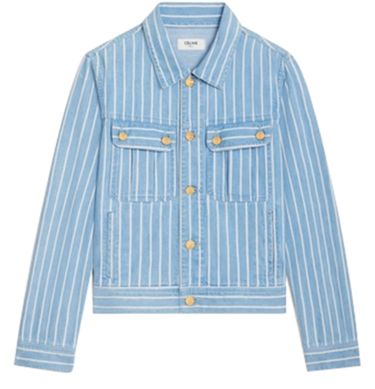 Celine's Trucker jacket redefines casual elegance with its classic fit and lightweight denim. Featuring two patch pockets with flap on the chest and two welt pockets, it blends functionality with style. The adjustable waist tabs and distinctive Triomphe jeans buttons elevate this jacket, making it a must-have for effortless sophistication.