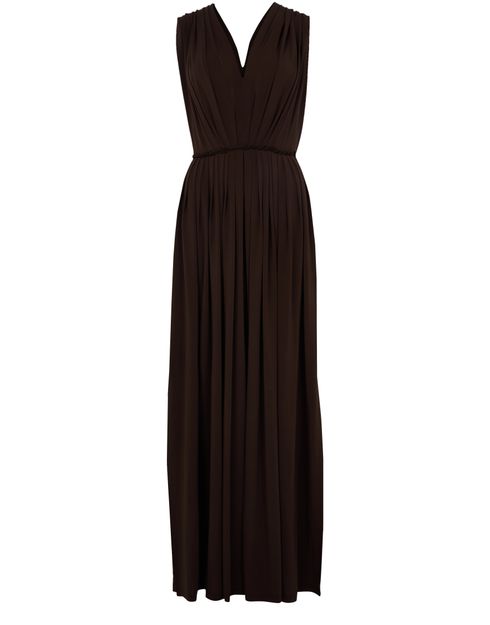 Max Mara's Walter draped maxi jersey dress showcases a flared silhouette that gracefully flows with every step. Its sleeveless design and v-neck back create an elegant allure, while the concealed back zipper closure ensures a seamless fit. Visible stitching adds a touch of sophistication, making it perfect for any occasion.