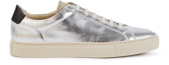 The retro-style Achille trainers have a silver texture that shines and hugely feminises the slender, modern lines of these Common Projects shoes.