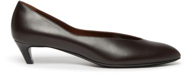 The Row Almond pumps are a sleek and sophisticated addition to any wardrobe. Made from smooth leather, these pumps feature a pointed toe and a very thin sole for a minimalist look. The unique heel adds a touch of elegance, while the logo-printed insole ensures comfort with every step.