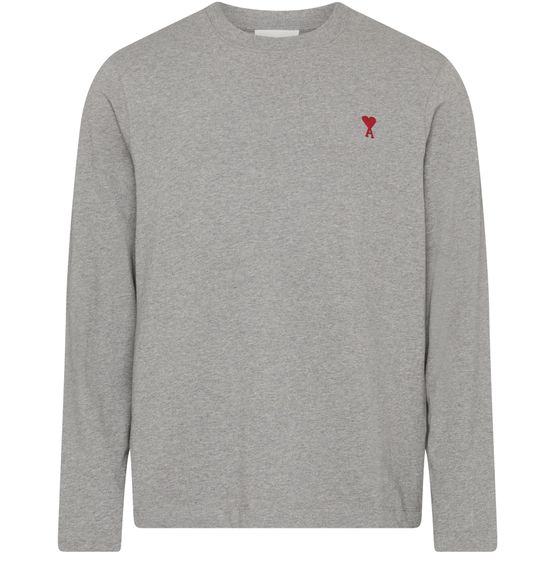 • Description : Round-neck t-shirt, straight cut, long sleeves, embroidered logo on the chest, red embroidery on chest, aMI tone-on-tone embroidery under back neckline, gOTS certified product (Global Organic Textile Standard).