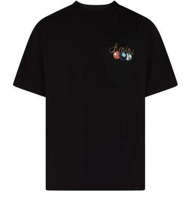 Amiri's Pool Cue t-shirt showcases a stylish crew neck and short-sleeved design, perfect for casual outings. With an embroidered chest logo and a printed logo at the back, it exudes modern flair. Visible stitching adds a touch of detail, making this piece a must-have for any fashion enthusiast.
