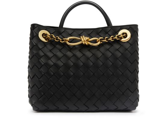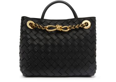 Bottega Veneta's Andiamo small bag is a stylish shopper tote, hand carried with a thin strap for effortless elegance. Its gold finish adds a touch of luxury, while the zippered interior pocket keeps essentials secure. Perfect for day-to-night transitions, this bag embodies sophistication and practicality in every detail.