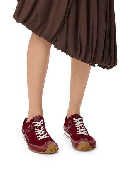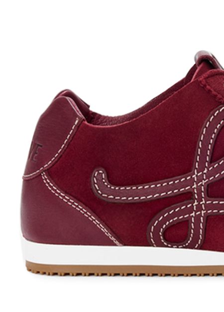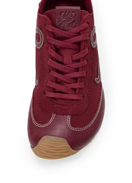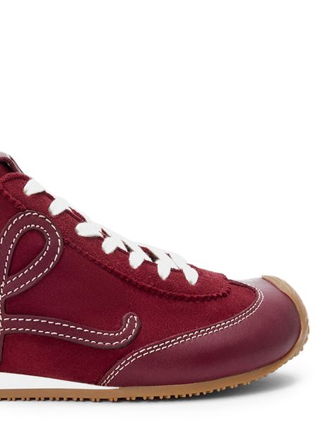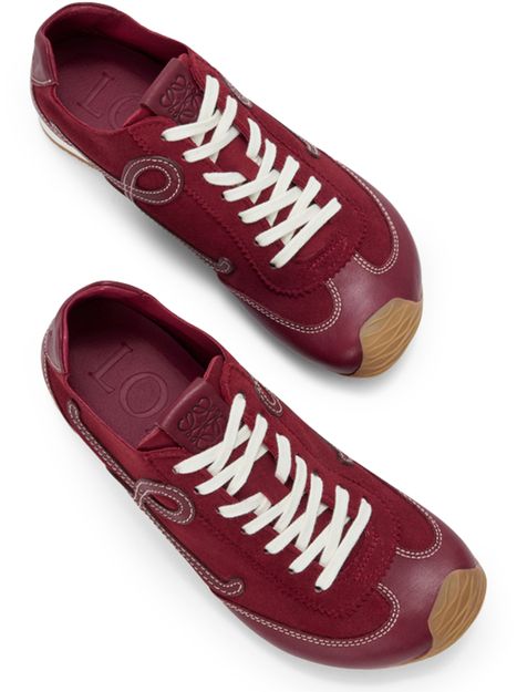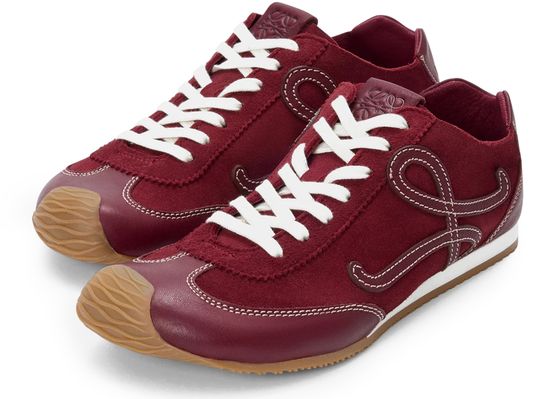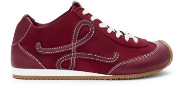 Introducing Loewe's Ballet Runner 2.0 sneakers, crafted from smooth leather with a closed round toe and flat heel. These sneakers feature a contrasting sole and contrast stitching, complemented by laces and a strap for a secure fit. The logo on the side adds a touch of sophistication.