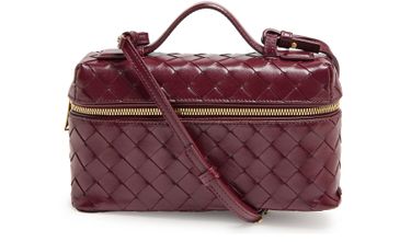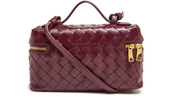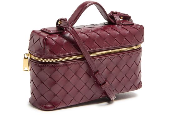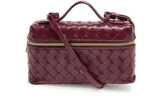 Bottega Veneta's Bang Bang vanity case combines elegance and functionality with its zipper closure and single compartment design. Crafted with visible topstitching and a gold finish, it features double handles and a detachable strap for versatile carrying options. Ideal as a toiletries bag or cosmetics pouch, it effortlessly elevates any ensemble.