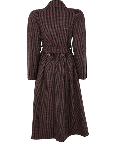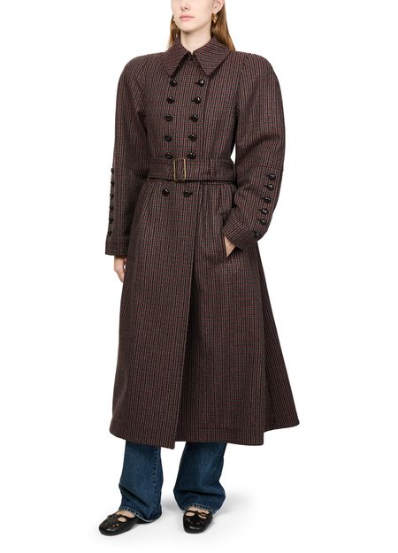 Introducing Chloe's belted coat, a masterpiece of modern elegance. This regular fit, long coat features a checked pattern and side pockets, offering both style and practicality. The double-breasted button fastening and long sleeves enhance its timeless appeal, making it a versatile addition to any wardrobe.