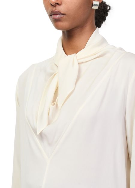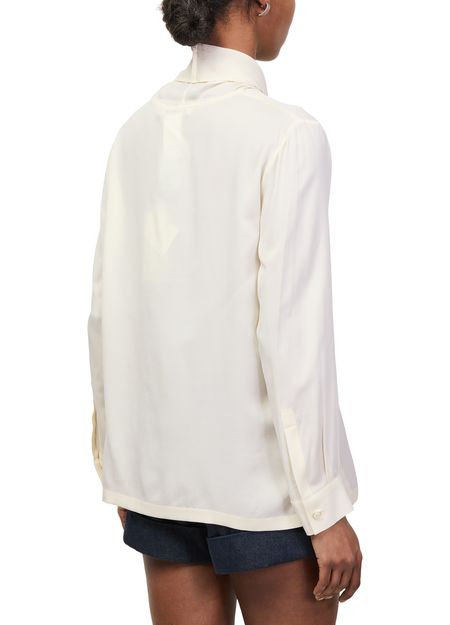Reveal Max Mara blouse with pussycat bow, featuring long, cuffed sleeves for a refined silhouette. The elegant neckline and tailored fit create a polished look, while the soft fabric ensures comfort. Perfect for elevating both professional and casual ensembles with timeless sophistication.