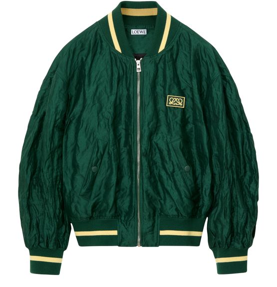 Reveal Loewe's bomber jacket, a short, long-sleeved silhouette with a sleek zipper closure. The embroidered front logo adds a refined touch, while the versatile design transitions effortlessly from day to night. Perfect for elevating any look with modern flair and signature craftsmanship.