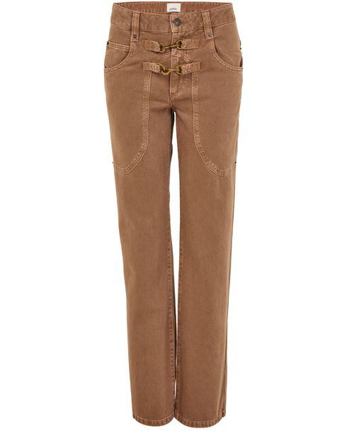 Reveal Isabel Marant's Brinley trousers, designed for style and comfort. These ankle-length casual pants feature a button and hook fastening, along with two front pockets and a back patch pocket for practicality. The visible stitching adds a modern touch, while the belt loops and back leather logo provide a refined finish.