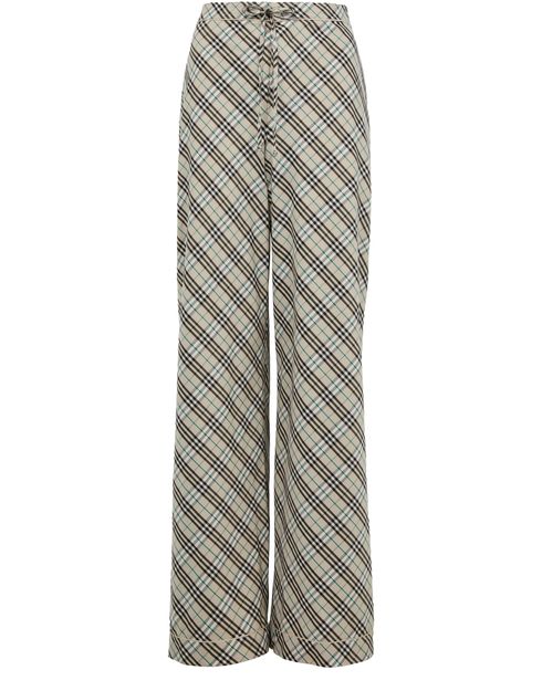 Discover Burberry's Check cotton pants, crafted with a classic checked pattern and visible stitching for a refined touch. These ankle-length casual pants feature side pockets and a back patch pocket for practicality. The adjustable drawstring waist ensures a perfect fit, making them an essential addition to your wardrobe.