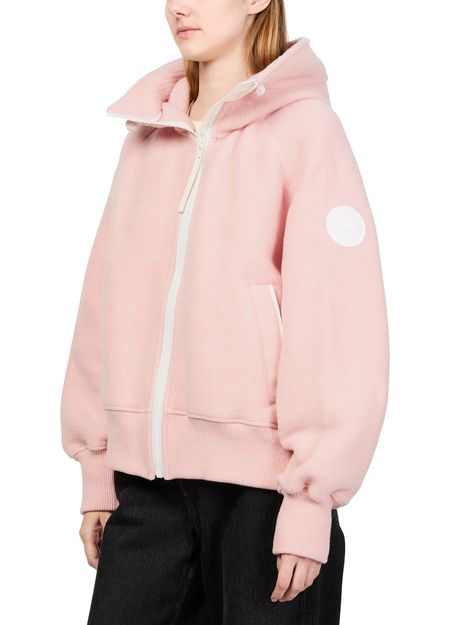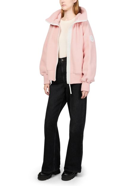 Reveal Canada Goose's Chilliwack fleece aviator jacket, a short bomber silhouette crafted from warm fabric. The long sleeves and zipper closure offer comfort, while side pockets add practicality. Distinctive details and signature branding elevate its versatile appeal, making it perfect for both relaxed and refined looks.
