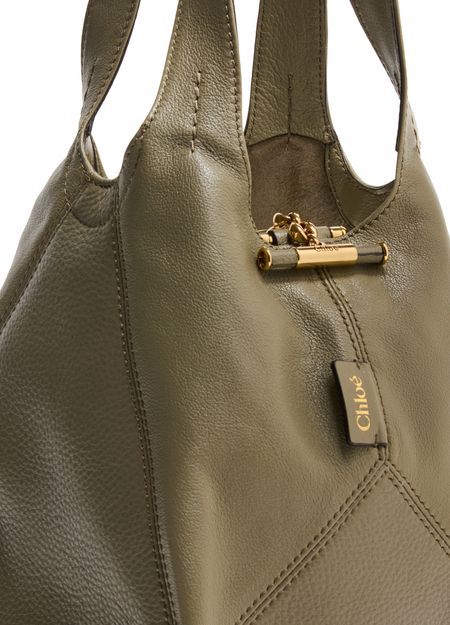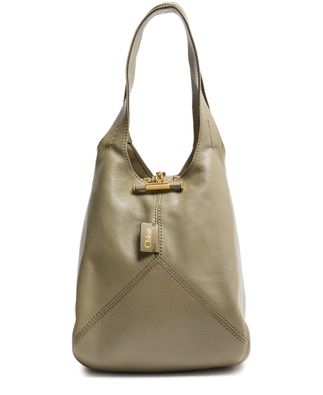 Reveal Chloé's Balloon shoulder bag, crafted from grained leather with signature saddle stitch detailing. The gold clasp and gold-finish accents add a refined touch, while double handles and a single compartment ensure both style and practicality. A front logo in gold letters completes this modern statement piece.