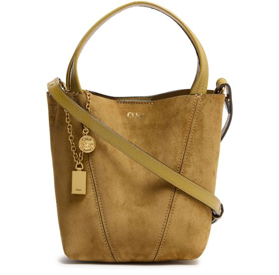 Reveal Chloe's Spin tote bag, crafted with luxurious suede for a modern edge. Adorned with gold-tone charms and a metal horse medallion, this bag promises elegance and style. The spacious interior and double handles ensure practical sophistication, while the adjustable strap offers versatility and comfort.