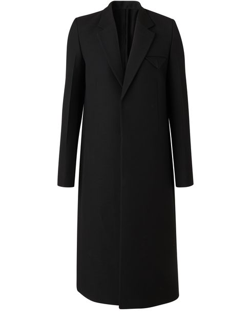 Faithful to its values, this slightly shaped long coat from Bottega Veneta is very elegant. The Italian brand adds a subtle original touch with an unusual chest pocket. Easy to wear, this coat has a slightly crossover style with front buttons. Wear with an elegant suit and leather ankle boots.