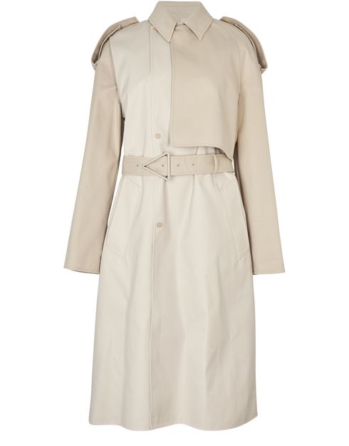 This very structured maxi-length waterproof tie-waist cotton coat demonstrates Bottega Veneta's technical and artistic expertise through its elegant solid-color design.