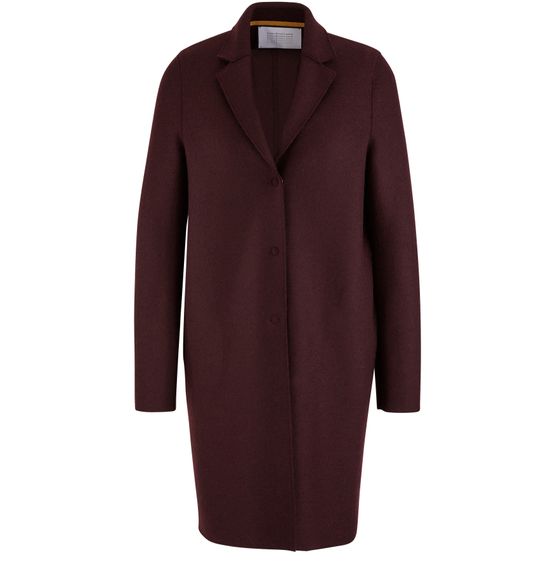 Harris Wharf features refined lines on this cocoon wool coat. The London-based brand is well-known for its coats and blazers in impeccable cuts and bright colors. This piece is offered in multiple deep colors and displays a notched lapel collar and three invisible buttons. Wear this model over a funnel neck sweater and neutral slim-fit pants to let its contrasting color shine through.