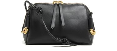 Bottega Veneta's Concert clutch bag combines elegance and functionality. Its single compartment secures essentials with a sleek zipper closure. The gold finish gleams, complemented by visible topstitching. A single handle and detachable strap allow for versatile styling, whether worn crossbody or as a mini bag, making it a perfect accessory.