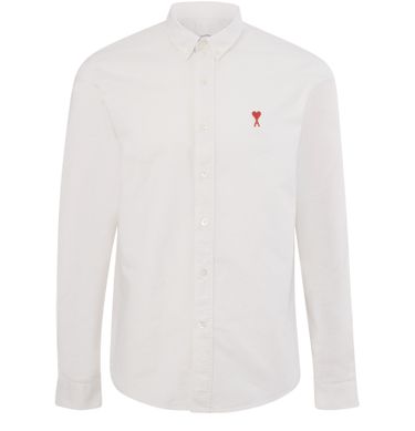 This cotton shirt featuring the slim fit of the Ami brand also has a buttoned collar. The iconic heart-shaped logo is displayed on the chest.