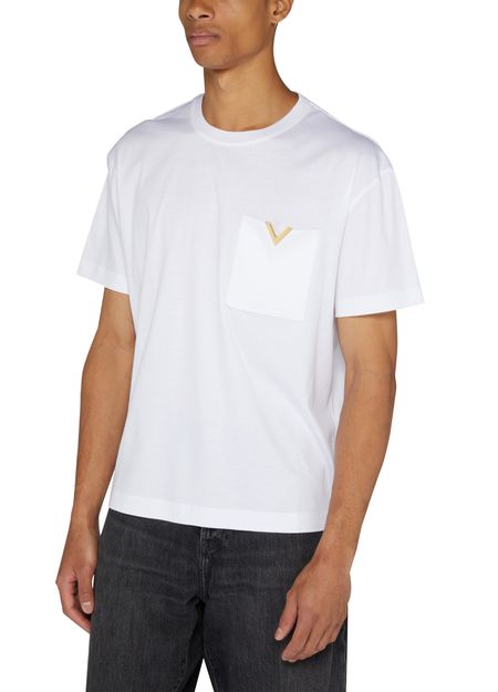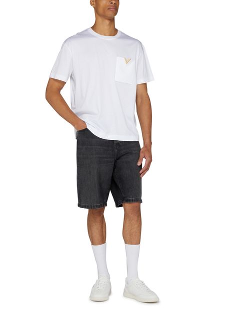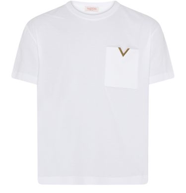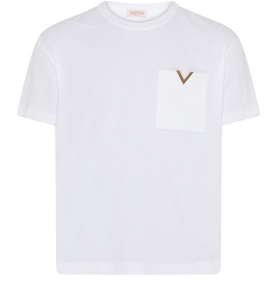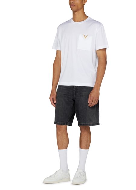 Valentino's Cotton T-shirt with V detail boasts a short-sleeved design, perfect for casual outings. Its crew neck adds a classic touch, while the breast pocket and patch pockets enhance functionality. With visible stitching and a logo at the back label, this t-shirt merges style and practicality seamlessly.