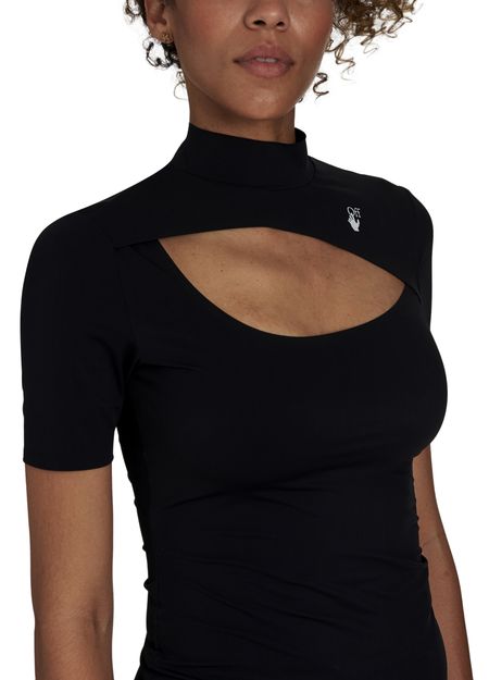 Off-White presents an ultra-feminine piece with this elegant Cut-out t-shirt. It reveals the top of the chest while fitting close to the body.