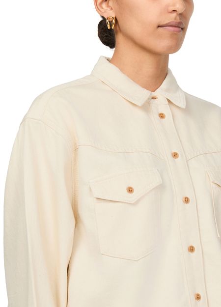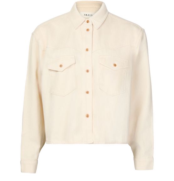 Unveil the Skall Studio Dolly long-sleeved shirt, a stylish piece with a boxy fit and crop length. Featuring front buttoned closure and two breast patch pockets, this top blends effortlessly with any modern wardrobe, offering a versatile style compatible with various looks.
