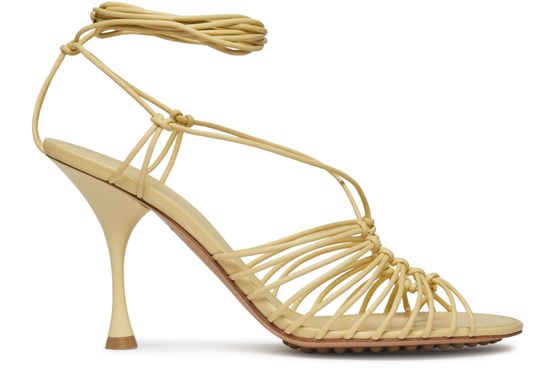 Bottega Veneta's Dot sandals feature an open round toe and stiletto heel for a sleek, modern look. The very thin sole and notched sole provide subtle yet stylish details. An ankle strap detail adds a touch of femininity to these elegant and versatile sandals.