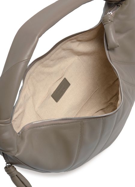 Reveal Lemaire's hobo shoulder bag, crafted from smooth leather with a padded texture. The single handle and visible stitching add a refined touch, while the zipper closure ensures both security and style. This piece blends modern design with everyday functionality for a sophisticated statement.