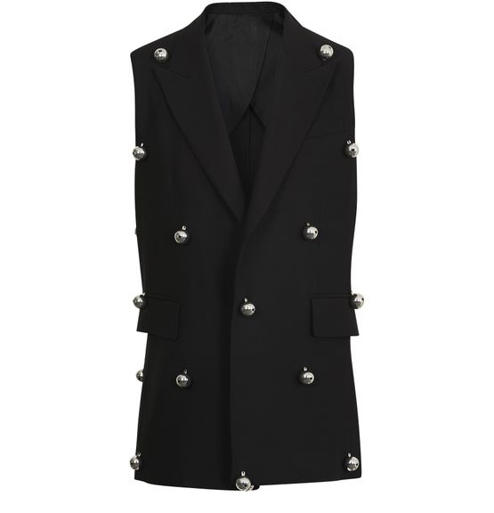 Ami is the designer of the sleeveless Grelots jacket. This piece, with its contemporary design, is made of a monochrome fabric combining the lightness of cotton and the softness of virgin wool. The Parisian company offers a jacket with a contemporary design boosted by multiple tiny bells sewn together. A sophisticated piece to wear, ideally with a long-sleeved t-shirt.