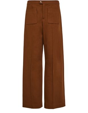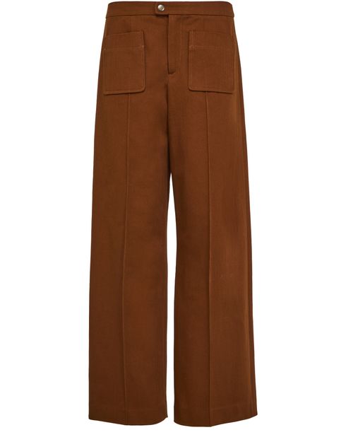 Description : ankle length, casual pants, logo at the back label, side pockets, back pocket, buttoned and concealed zipper closure, high-waisted fit, wide cut.