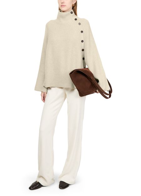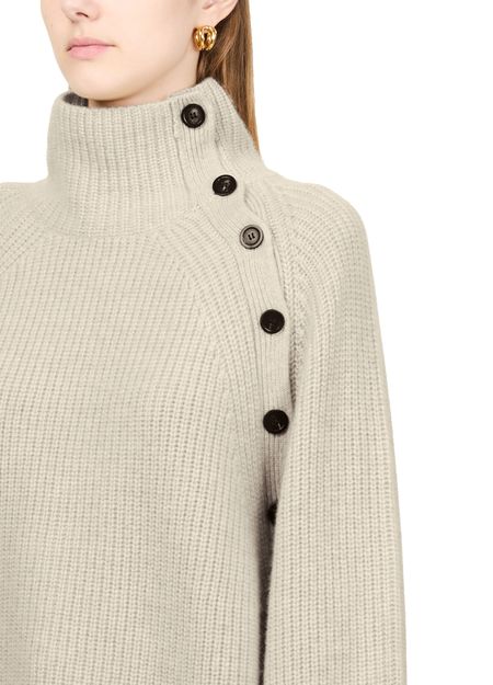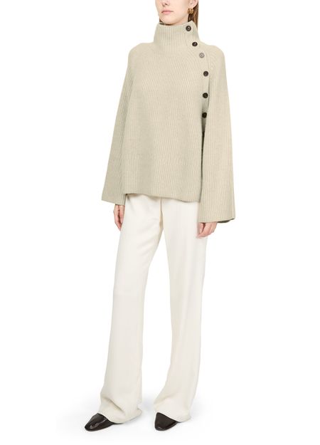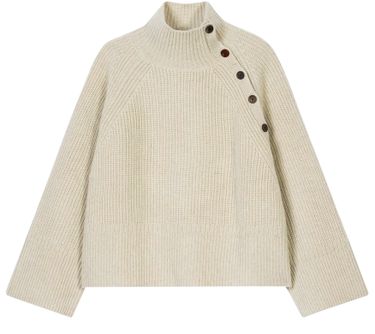 Reveal Bompard's cashmere high neck sweater buttoned at the side, a masterpiece in knitwear. This long-sleeved piece features a loose fit with a ribbed texture, offering both comfort and style. The shoulder buttoned closure and embellished buttons add a touch of elegance, making it perfect for any occasion.